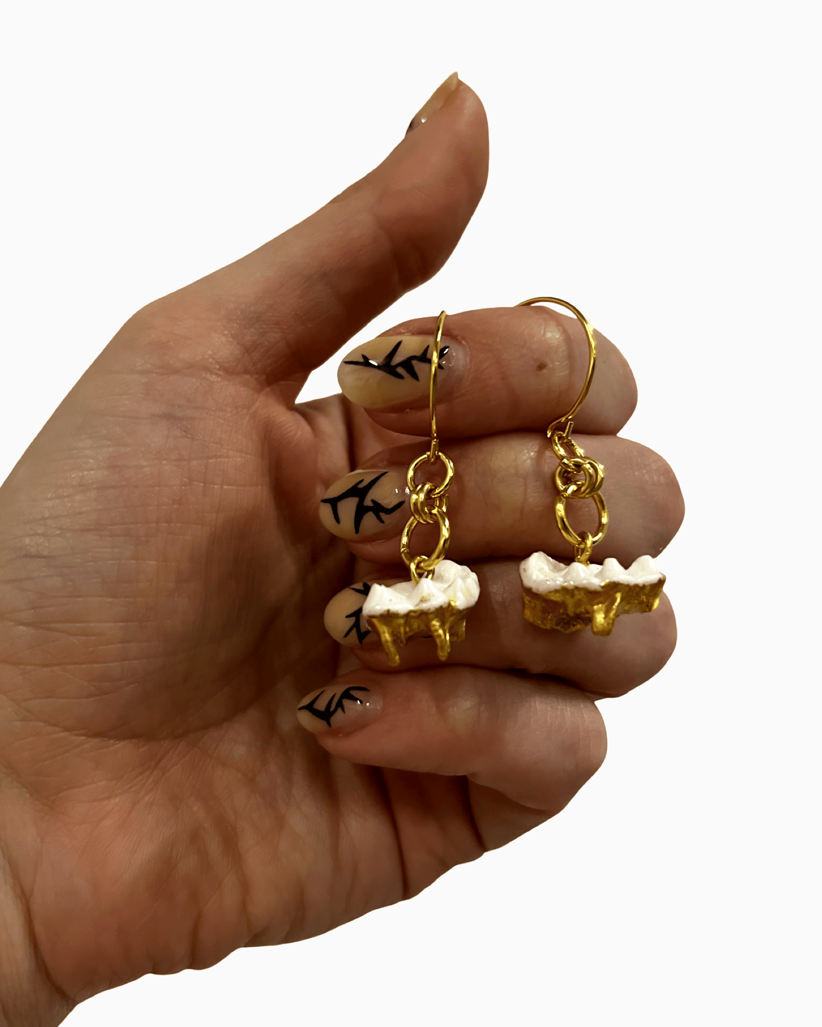 Badger teeth with gilded roots on hook earrings