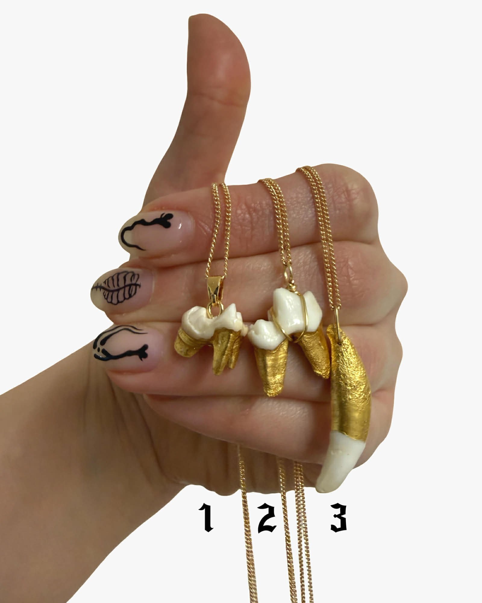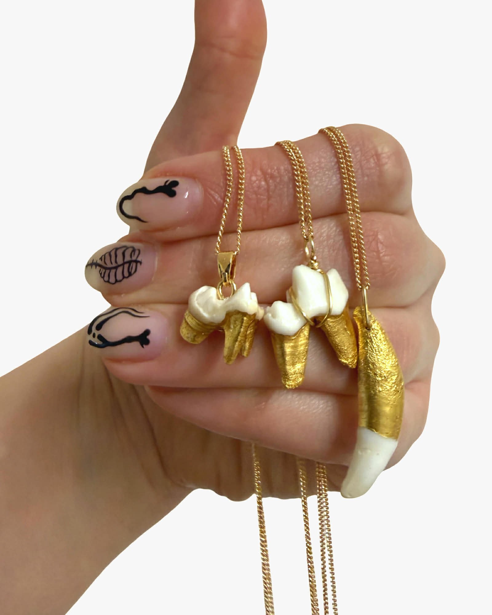 Fox and badger teeth with gilded roots on thin 16-20" adjustable chain.