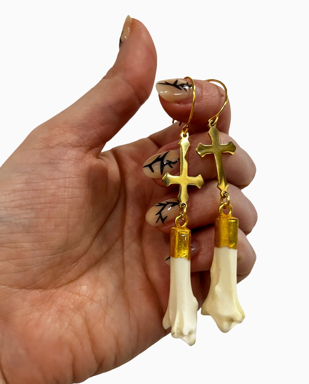Hare bone gilded hook earrings.