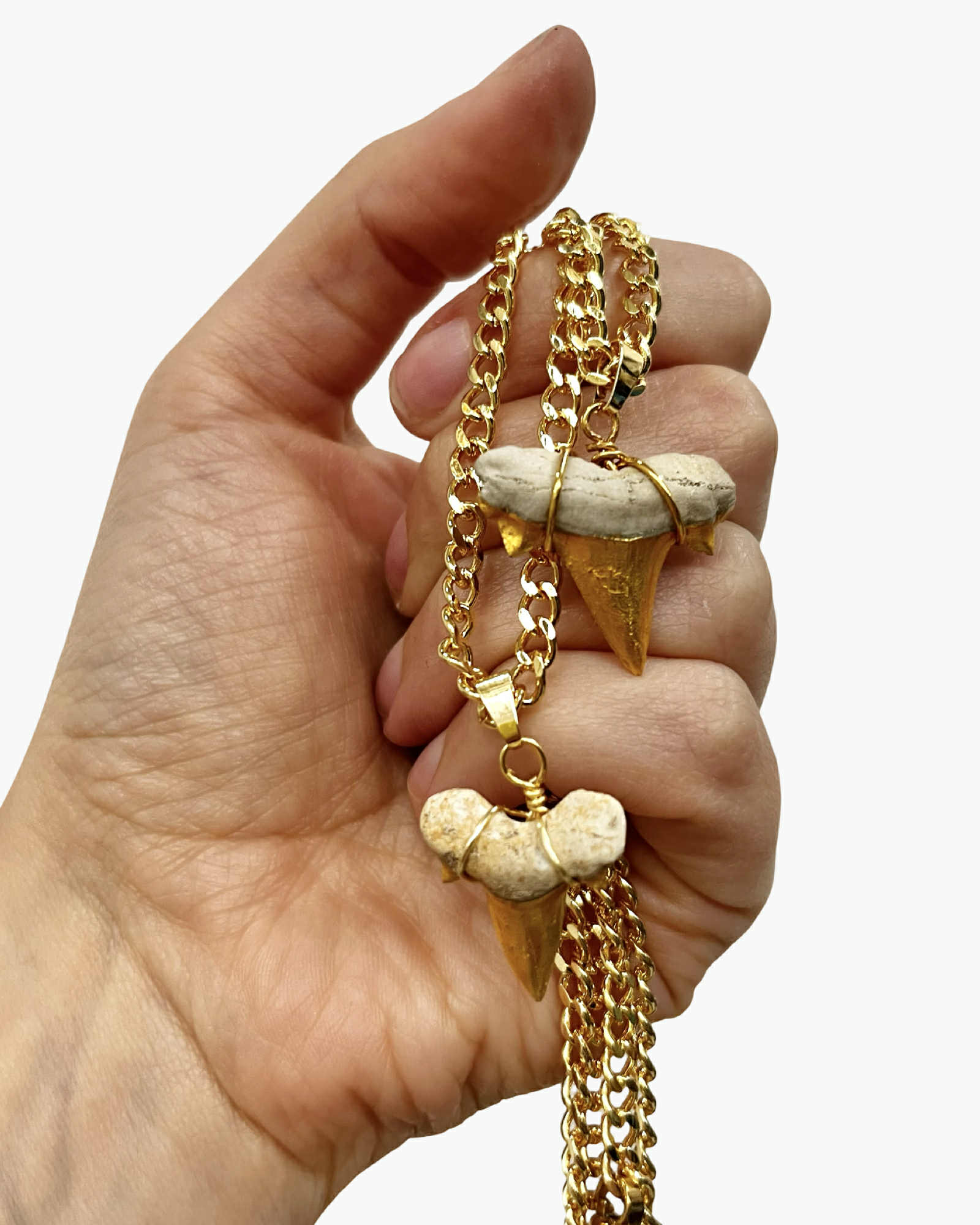 Mackerel Shark tooth fossil gilded necklace on adjustable chain
